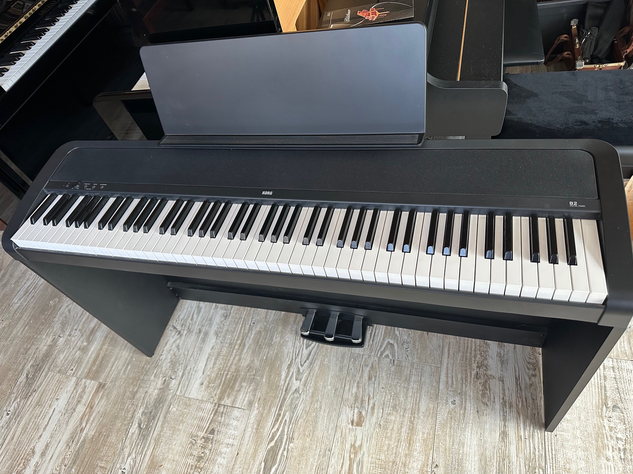 • Dans la série B, le B2 bénéficie de nouveaux sons naturels de piano acoustique échantillonné en stéréo (Piano Allemand, Piano Japonais, Piano Italien, etc.…), d’une amplification interne supérieure au B1 et d’un sentiment de jeu authentique en font l’instrument d’entrée de gamme idéal pour ceux en quête d’une sensation pure de piano acoustique.